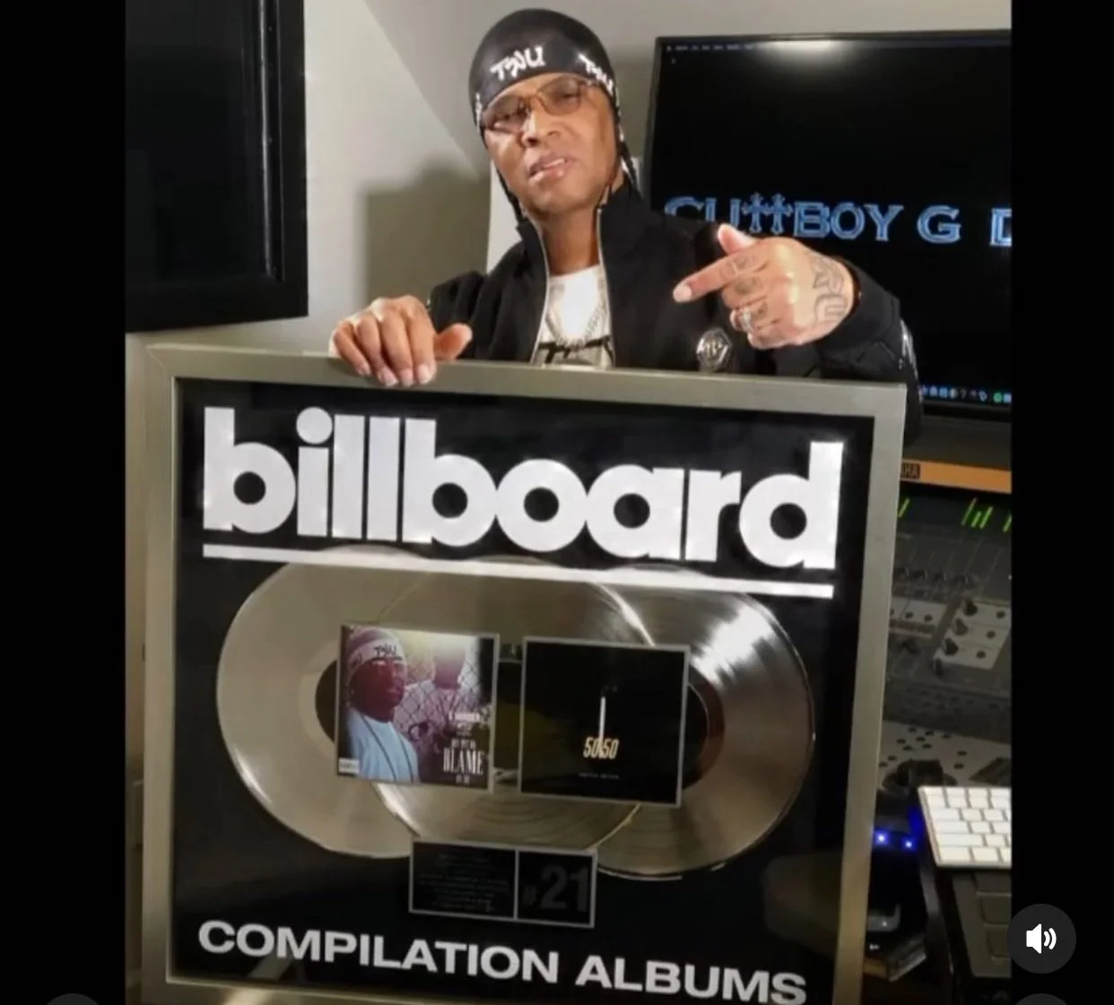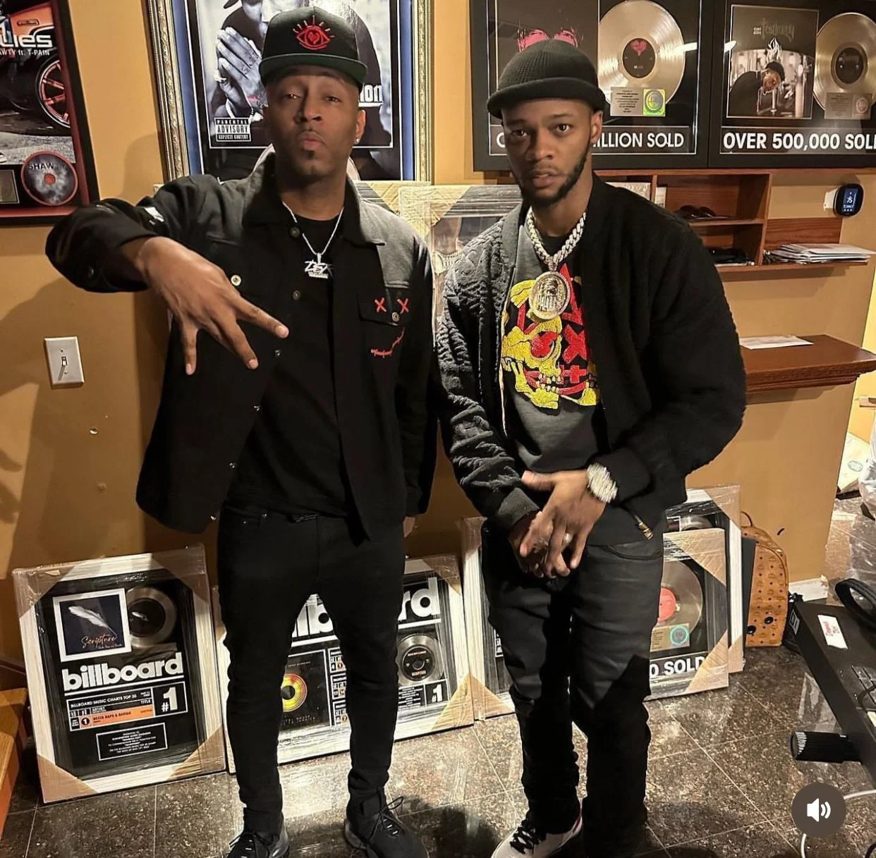 (Shown) Multi-Platinum Producer, Drumma Boy & Papoose Standing In Front of Plaques Delivered by The DJ Grid.